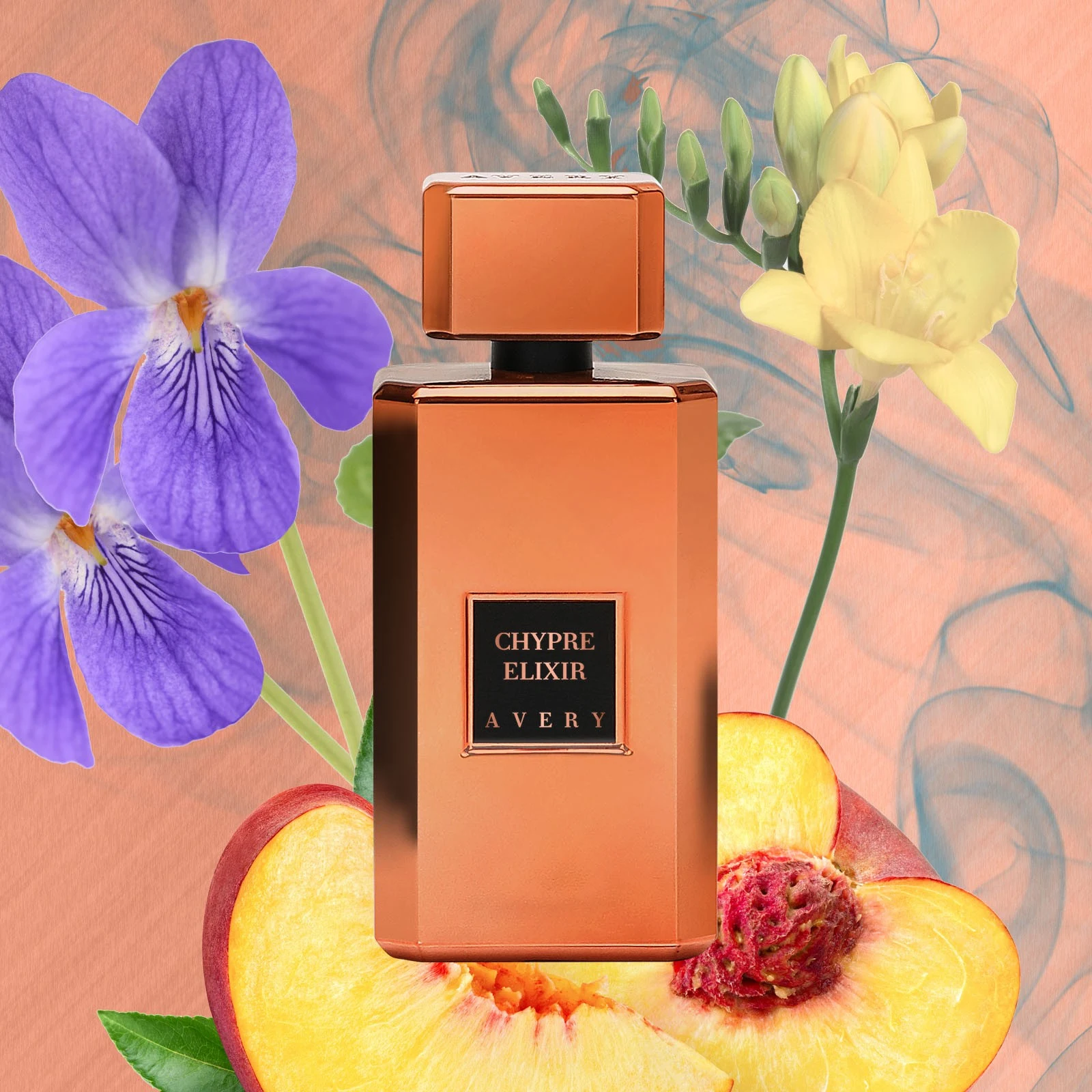 Avery Chypre Elixir is a chypre floral fragrance for men and women. Launched in 2018, this composition features the olfactory signature of Celso Fadelli. The top notes unfold a vibrant accord of nectarine, raspberry, and violet leaves; the heart reveals an elegant florality with rose, sambac jasmine, and freesia; while the base notes land on a warm, woody foundation formed by white musk, ambroxan, benzoin, and cyprus.
