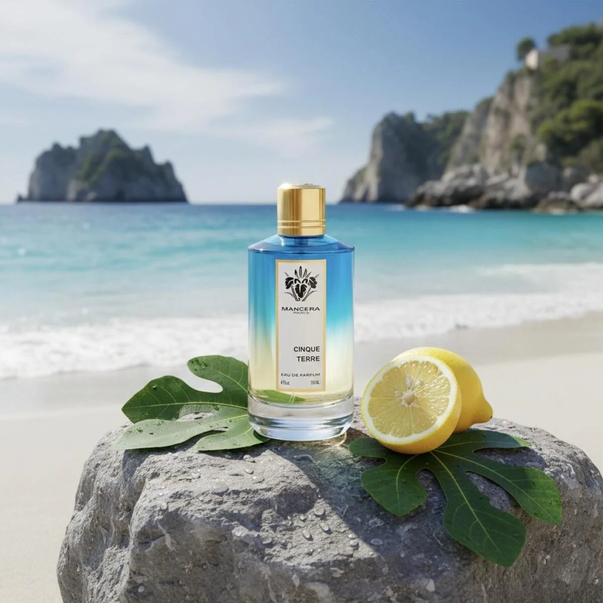 Cinque Terre by Mancera is an aromatic woody olfactory creation, designed for men and women. This fragrance, signed by perfumer Pierre Montale, was launched in 2024. Its composition unfolds with a vibrant top note of lemon, sour lime, rosemary, and cardamom; an evocative heart blending sea salt, cedar, fig leaves, pine, and amber; and a warm, persistent base of oakmoss, tonka bean, sandalwood, and labdanum.