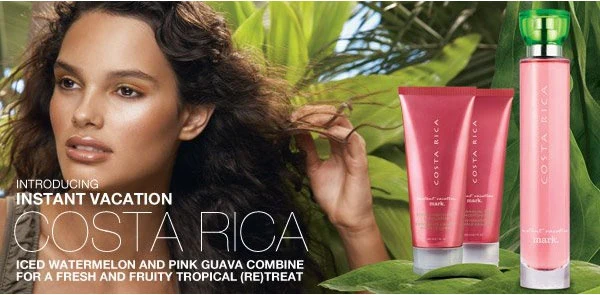 Costa Rica Instant Vacation by mark. is a fruity floral fragrance for women. Launched in 2009, this composition features watermelon and guava in the top notes; mango blossom and orchid in the heart; and musk, sand, and driftwood in the base.