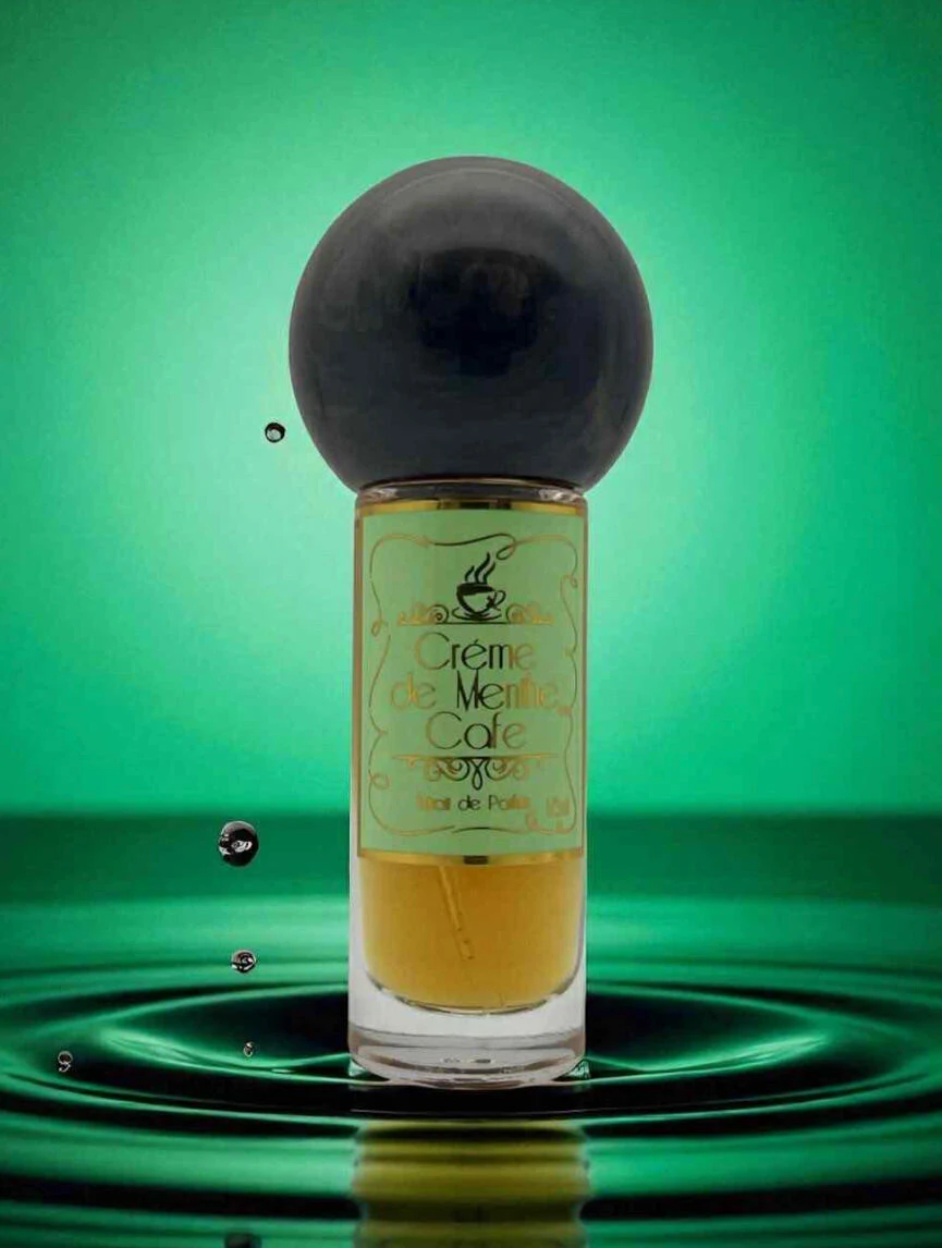 Crème de Menthe Café by Statik Olfactive is an olfactive fragrance for men and women, launched in 2025. The nose behind this creation is Hez Binkowitz. The top notes unfold with dark chocolate, coconut milk, whipped cream, peppermint and mint; the heart reveals a harmony of dark chocolate, coffee, Bourbon vanilla, coconut, milk, myrrh, rum, syrup and sweet orange; while the base notes anchor the composition with coffee, benzoin, cognac, cocoa butter, brown sugar, frankincense, sandalwood, labdanum, ambergris and white musk.