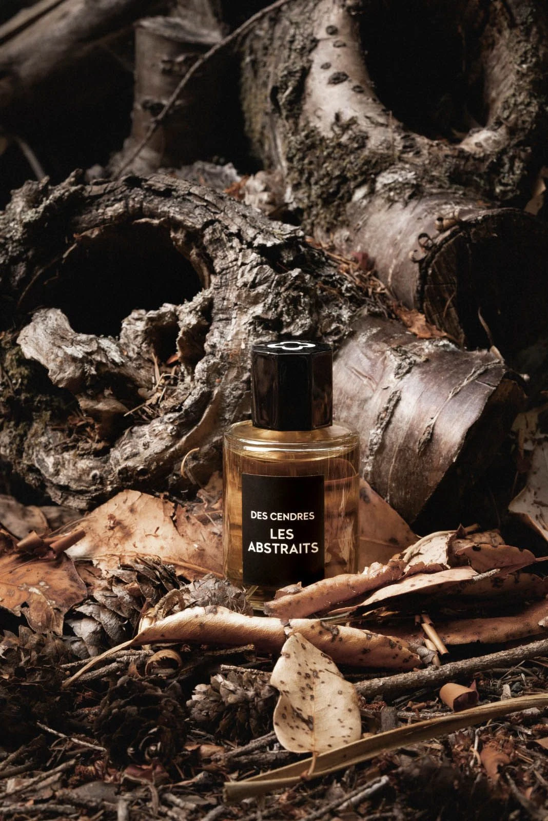 Des Cendres by Les Abstraits is an aromatic woody fragrance for men and women. Launched in 2023, this composition is signed by nose Antoine Lie. The opening features pine tar, galbanum, birch tar, mint, and cloves, unfolding with characteristic intensity. The heart reveals an enveloping leather blended with violet leaves and neroli, while the base settles on oakmoss, civet tincture, vetiver, and patchouli.