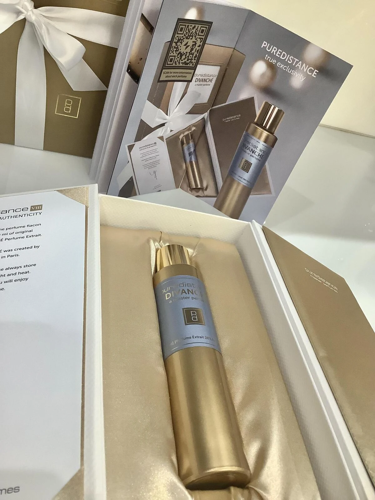 Divanché by Puredistance is a creation in the fruity floral olfactive family, designed for men and women. This new fragrance, launched in 2025, has been signed by nose Nathalie Feisthauer. In its top notes, the composition unfolds a vibrant freshness with pear, apple, and pineapple. The heart of the fragrance reveals an exotic and luminous bloom thanks to gardenia, Indian jasmine, Indian neroli, champaca, heliotrope, and Hedione. To finish, the base notes offer a warm and enveloping foundation with woods, ambrette musk, ambroxan, Muscona, benzoin, and yellow cassia, also known as Siam cassia.