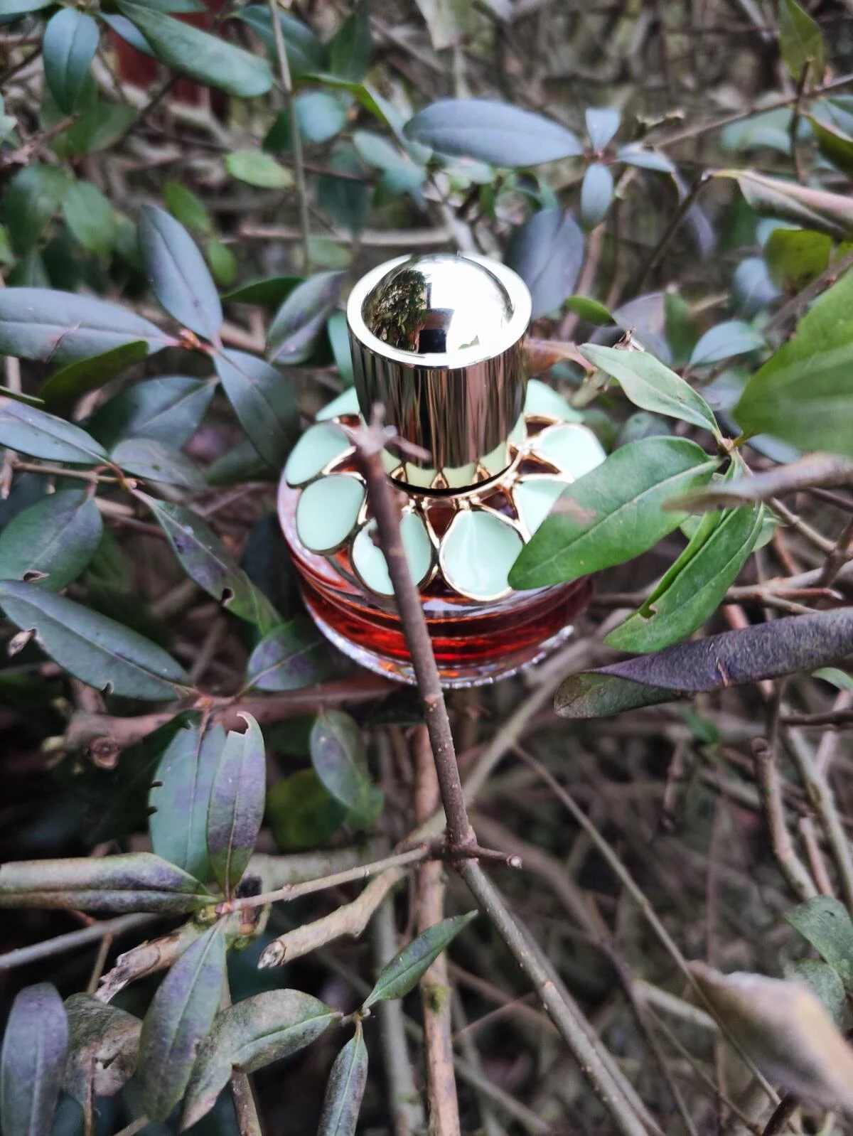 I was drawn to it because of that curious and varied pyramid. Unfortunately, not all the components are noticeable, but it’s a very curious scent that I recommend trying. The opening notes are rich in nuances, but then a flower similar to gardenia, perhaps frangipani, takes over. As the hours pass, it picks up a licorice tone, maybe anise, alongside the white flower, and becomes a bit heavy indoors. The almond, mint, and the rest of the original notes are heavily muted; perhaps the almond is the most perceptible. The performance seemed quite good to me.