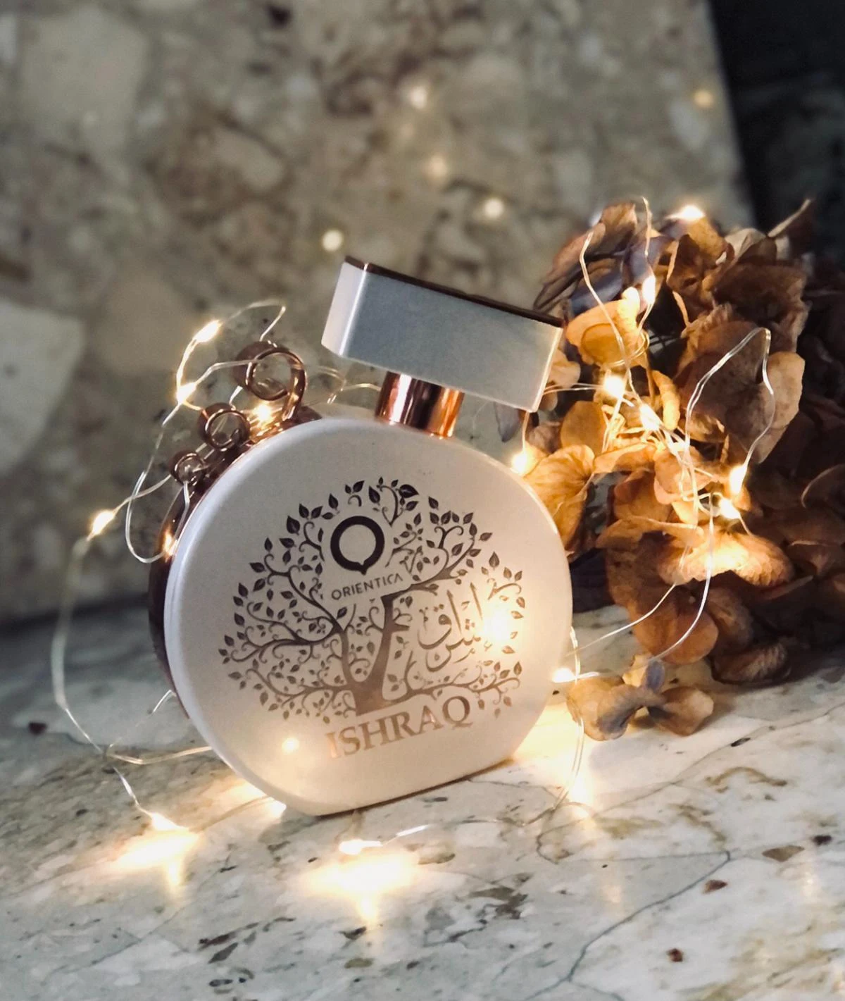Ishraq by Orientica is a woody floral musk fragrance for women. Launched in 2018, this composition features top notes of kumquat and lime; a heart of violet, iris root, jasmine, and valley lily; and a base of vanilla, musk, sandalwood, and cedar.