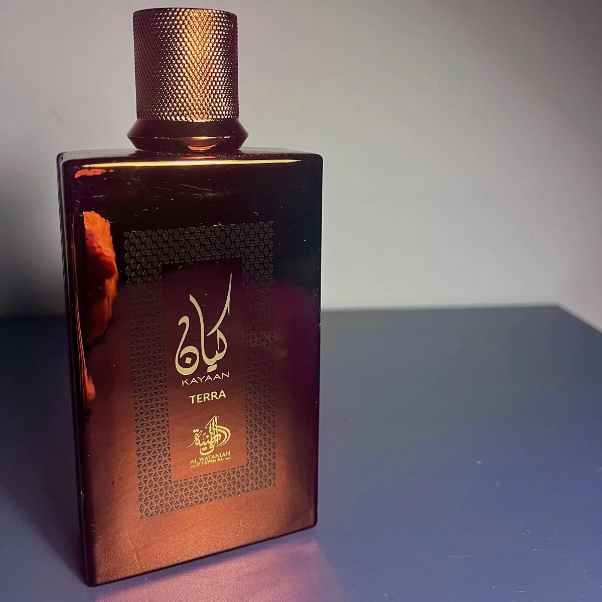 Al Wataniah Kayaan Terra is a fragrance from the olfactive family for men and women. This creation is new and was launched in 2025. The top notes are incense and leather; the heart notes are patchouli and myrrh; the base notes are cedar and davana.