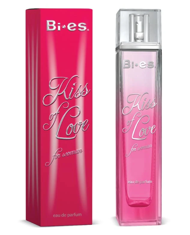 Kiss of Love by Bi-es is a fruity floral fragrance for women. The top notes are bergamot, orange, and cardamom; the heart notes are cyclamen (Persian violet) and rose; the base notes are vanilla, sandalwood, and cedar.