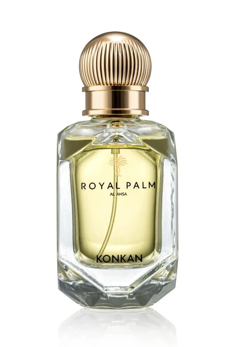 Konkan by Royal Palm is a fragrance from the olfactory family for men and women. The top notes are green mandarin, bergamot, and mango; the heart notes are geranium, osmanthus (fragrant olive), and jasmine; the base notes are honey, vanilla, patchouli, amber, sandalwood, musk, and moss.