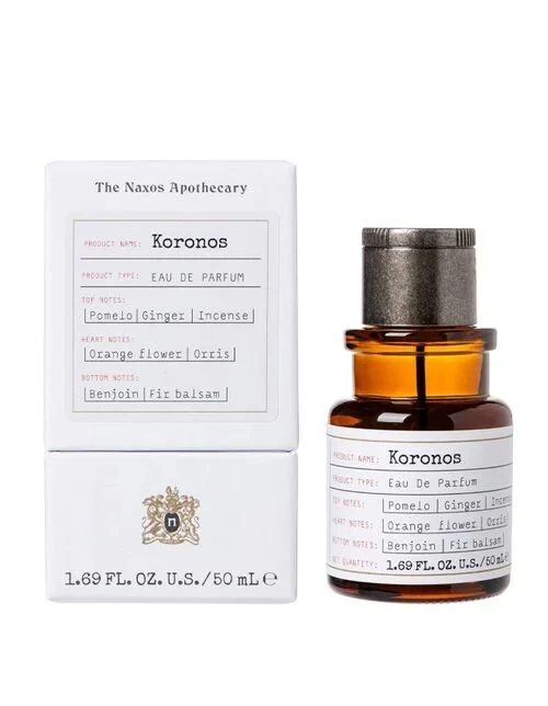 Koronos by The Naxos Apothecary is a floral fragrance from the olfactory family, launched in 2019, designed for men and women. Its olfactory pyramid unfolds with top notes of incense, ginger, grapefruit, and honey; a heart of iris and orange blossom; and a woody, resinous base of benzoin and fir.