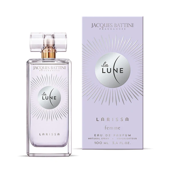 Larissa by Jacques Battini is a musky floral woody fragrance for women. Launched in 2013, this composition features an aquatic freshness, green and citrus accords in the top notes; a harmony of floral and woody notes in the heart; and a warm persistence of musk, talc-like notes, and amber in the base.
