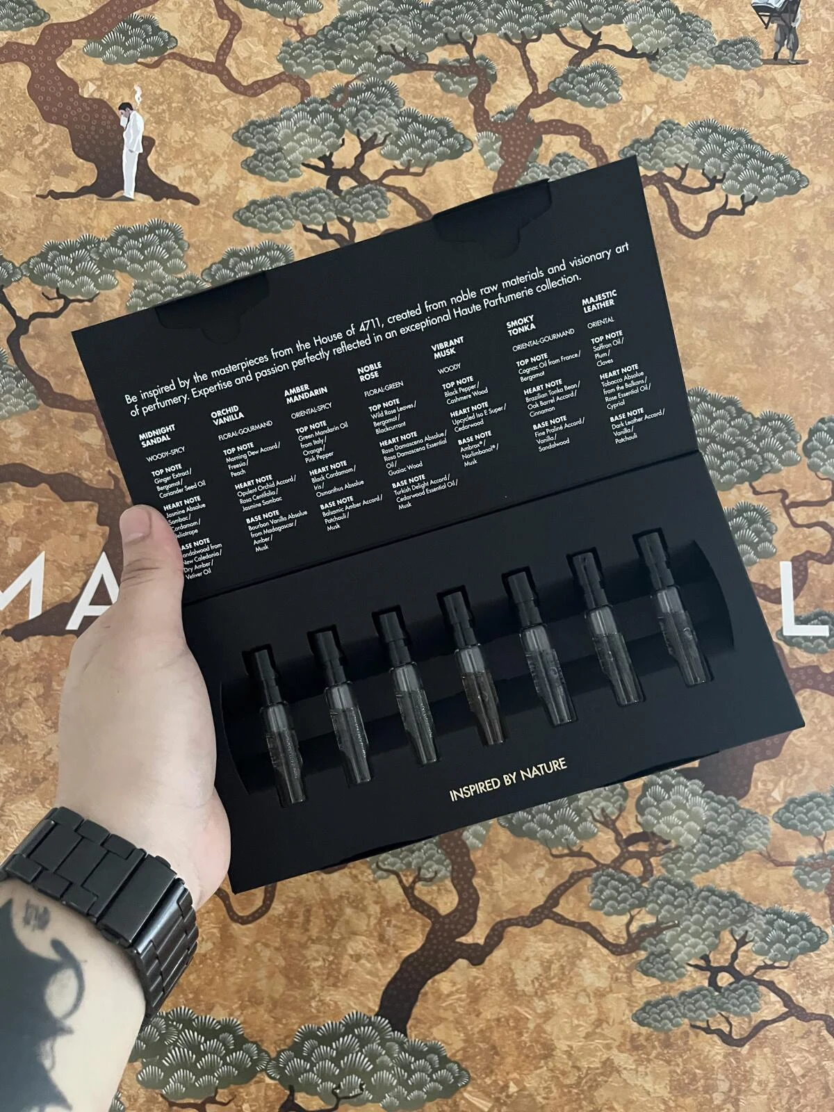 Majestic Leather by 4711 is a fragrance from the olfactive family for men and women. Launched in 2023, the nose behind this creation is Julien Rasquinet. The top notes are saffron, cloves, and plum; the heart notes are rose, tobacco, and patchouli (nagarmota); and the base notes are patchouli, vanilla, and leather.