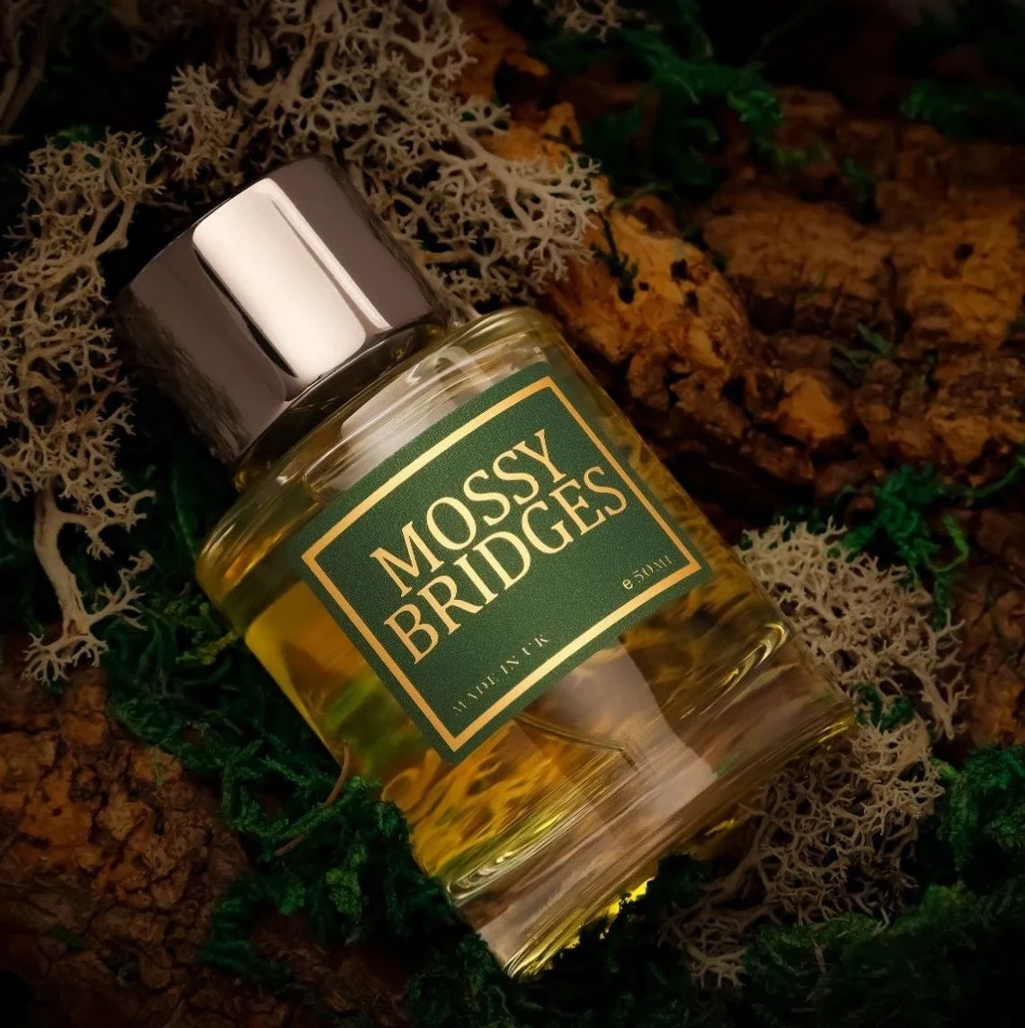 Mossy Bridges by Insider Parfums is an aromatic fragrance from the aromatic family, created for men and women. Launched in 2023, this composition features an olfactory pyramid that unfolds top notes of bergamot, cardamom, and lavender; a heart of jasmine, rose, oakmoss, and sandalwood; and a base of amber, vetiver, and patchouli. The fragrance was designed by perfumer Olivier Cresp.