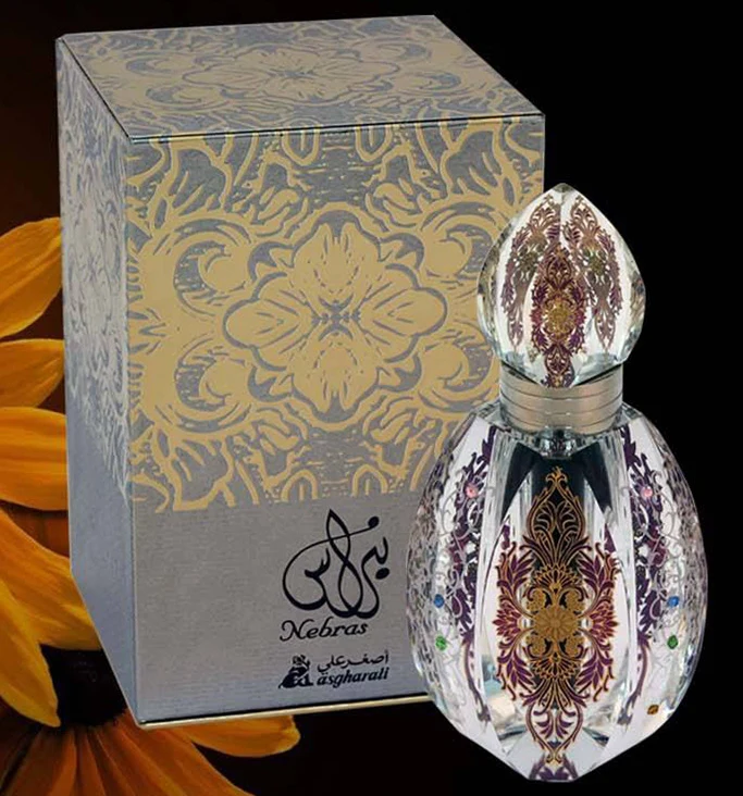 Nebras Attar by Asgharali is a fragrance from the musky floral woody family, suitable for men and women. Launched in 2014, this composition features a top note of floral scents, a heart of aromatic spices and cedar, and a base composed of Arab spices, balsamic vinegar, sandalwood, amber, and patchouli.