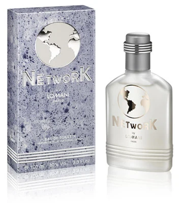 Network by Lomani is an aromatic fougère fragrance for men. Launched in 1996, this composition features top notes of mandarin, lavender, bergamot and mint; a heart of lily of the valley, nutmeg and water lily; and a base of sandalwood, cedar, clary sage, oakmoss, labdanum and musk.