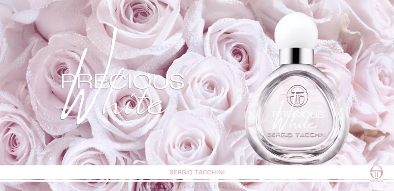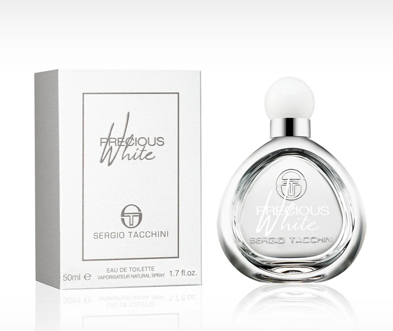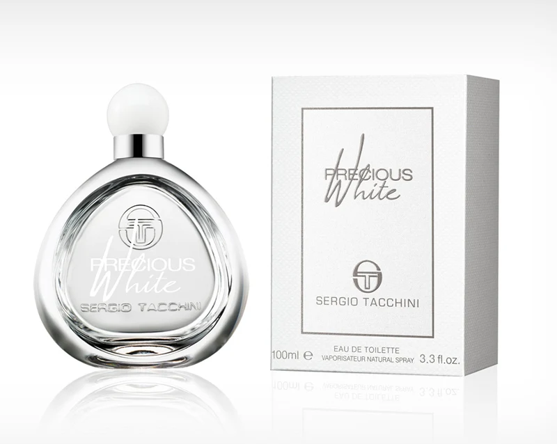 Precious White by Sergio Tacchini is a woody floral musky fragrance for women. Launched in 2014, this composition was created by Delphine Lebeau and Benoist Lapouza. The top notes reveal watermelon, pear, and white peach; the heart unfolds with aquatic notes, magnolia, and white rose; while the base notes complete the structure with white musk, rosewood, and sandalwood.