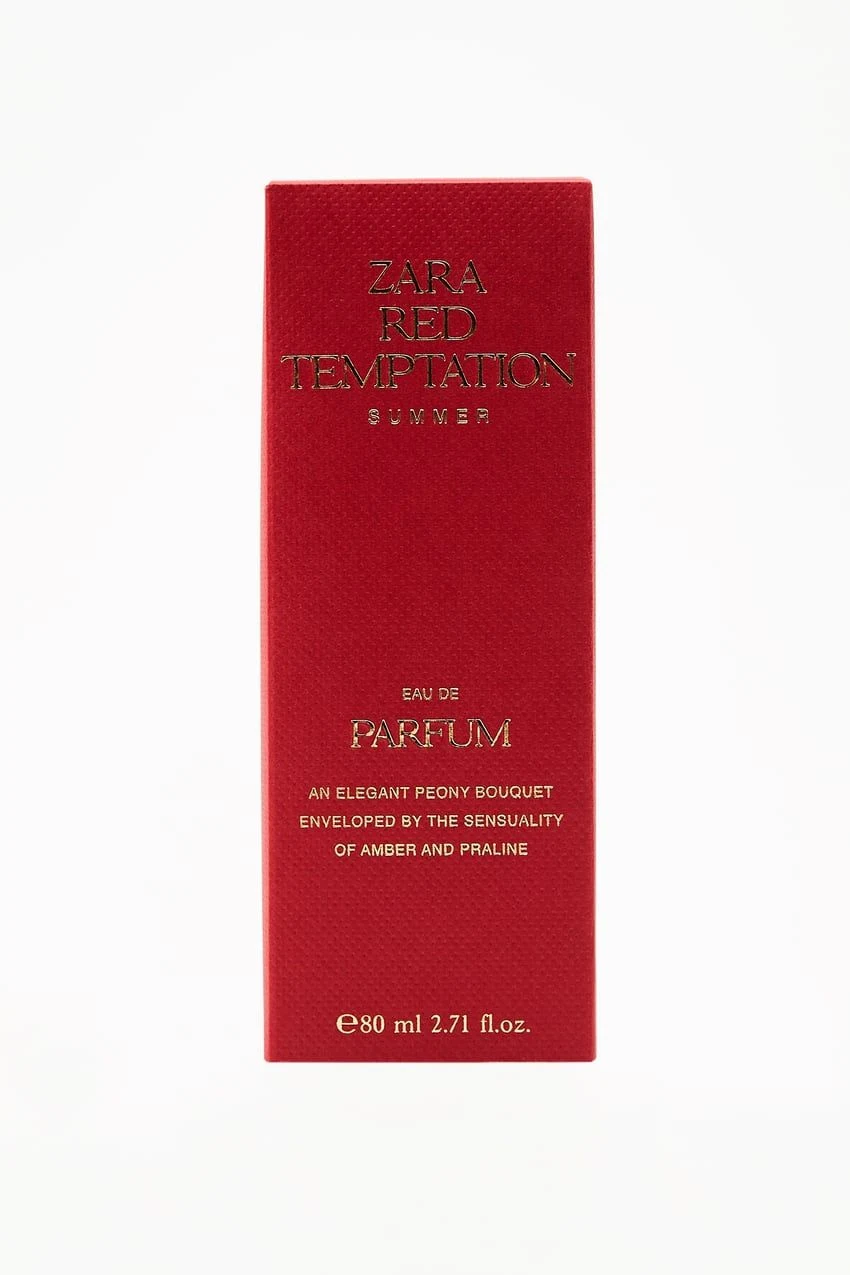 Zara's Red Temptation Summer is an oriental floral fragrance for women. Launched in 2023, this composition features lychee and raspberry in the top notes; rose petals and peony in the heart; and praline, amber, and musk in the base.