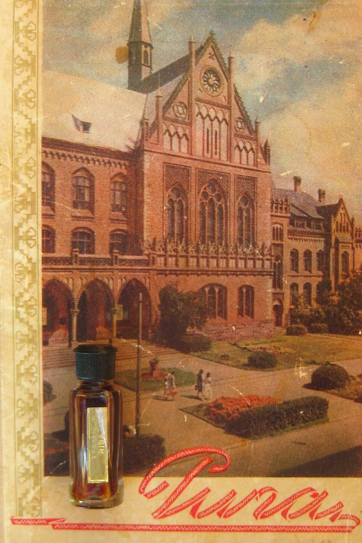 Riga by Dzintars is a floral chypre fragrance for women. Launched in 1958, this composition was created by Bronislava Schwarzman, Marta Irbena and F. Pauche. The top notes unfold with bergamot, neroli and aldehydes; the heart reveals vetiver, iris, violet, rose, lavender, lilac, cinnamon, ylang-ylang, jasmine, myrrh, caraway, costus and oriental notes; while the base notes settle into oakmoss, musk, civet, amber and powdery notes.