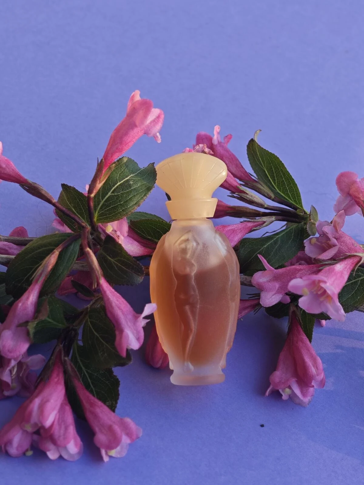 I’ve wanted to write about this perfume for a while as although I love it I didn’t know how to approach it. It is a fragrance that asks for prudence patience and moderation. You need prudence not to wash your neck instantly because the opening notes are intense and unpleasant: a nearly medicinal bitter orange like overripe fruit alongside a strange peach that doesn’t harmonise. This lasts 5 minutes if you’re lucky or up to 30 if not. But with patience the beauty of the heart notes emerges: an ensemble of rose tincture violet and ylang-ylang with that vintage talcum powder touch that makes me imagine a young woman before an old boudoir surrounded by rice powders in glass jars ivory combs and tortoiseshell admiring herself in the mirror like the ladies of the Belle Époque. Despite that image it’s not for elderly women but for women who love the delicate talcum-powdered and ethereal. I don’t detect vanilla or woods. The bottle fits perfectly: frosted glass with Greek statues and pink liquid. The trail is intense and the longevity exceptional almost 24 hours. Finally it requires moderation: only 1 or 2 sprays because if you overdo it it will smell strong and the floral bitterness will persist. It often happens to me because I struggle to moderate myself while savouring those heart notes I love so much. If asked why I use it frequently and recommend it despite being ‘difficult’ it’s because it evokes eras and creates mental images of peace and beauty making us believe in past lives with another appearance and destiny reconnecting us with hidden memories deep within our psyche.
