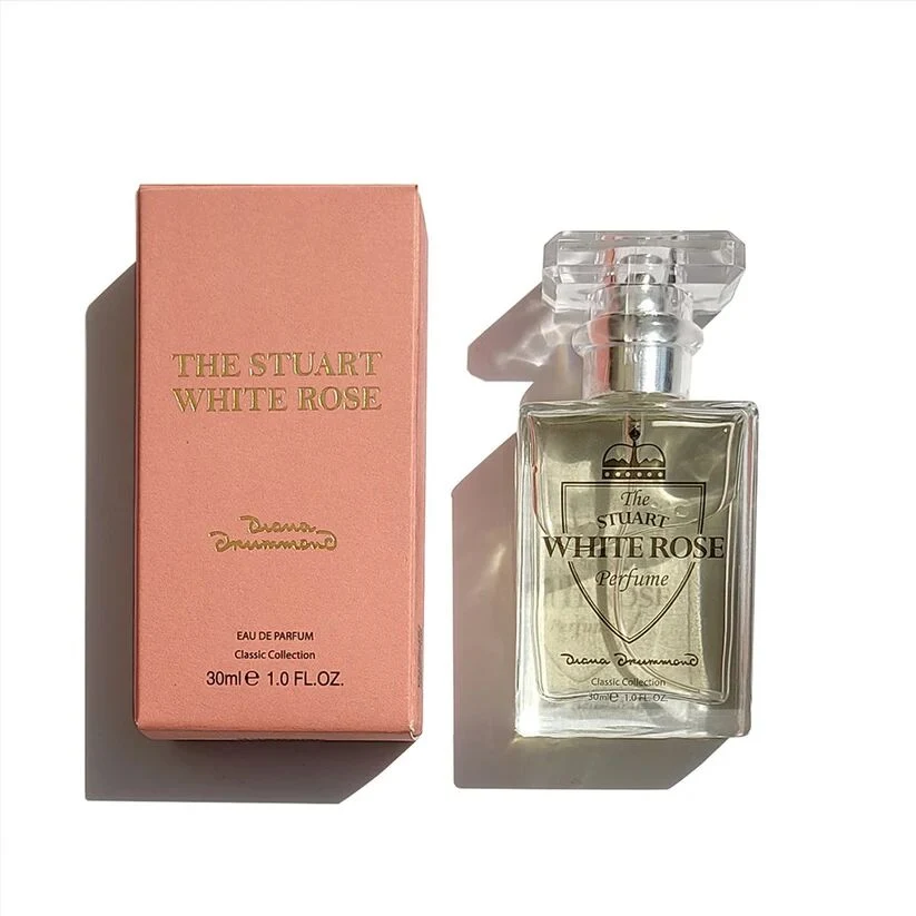 The Stuart White Rose Classic by Diana Drummond is a fragrance from the olfactive family for men and women. Launched in 1950, this composition features English rose, blackcurrant, and freesia as top notes; lily of the valley, peppermint, cinnamon, and bark in the heart; and benzoin, oakmoss, and musk in the base.