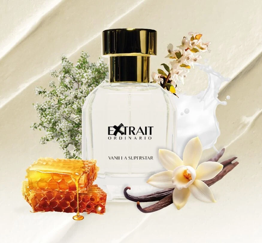 Vanilla Superstar by Extrait Ordinario is a fragrance from the olfactive family for men and women. This creation, previously unseen in the brand's catalogue, was launched in 2025. Its olfactive pyramid unfolds with a sweet combination of vanilla and sugar in the top notes; the heart reveals a creamy texture of milk mousse and tonka bean; while the base settles on white musk, amber and honey.